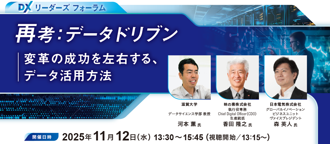 本フォーラムでは、DXを進める企業は、AI時代の到来をどう捉え、DX戦略をいかに進化させるべきか、その最前線に迫ります。単なる事例の紹介に留まらず、変革を成功に導いた要因を、具体的に解き明かします。