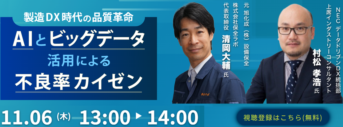 本セミナーでは、生産現場で蓄積されるデータをAIとビッグデータで分析し、不良の発生を事前に予測する最新の取り組みをわかりやすくご紹介します。