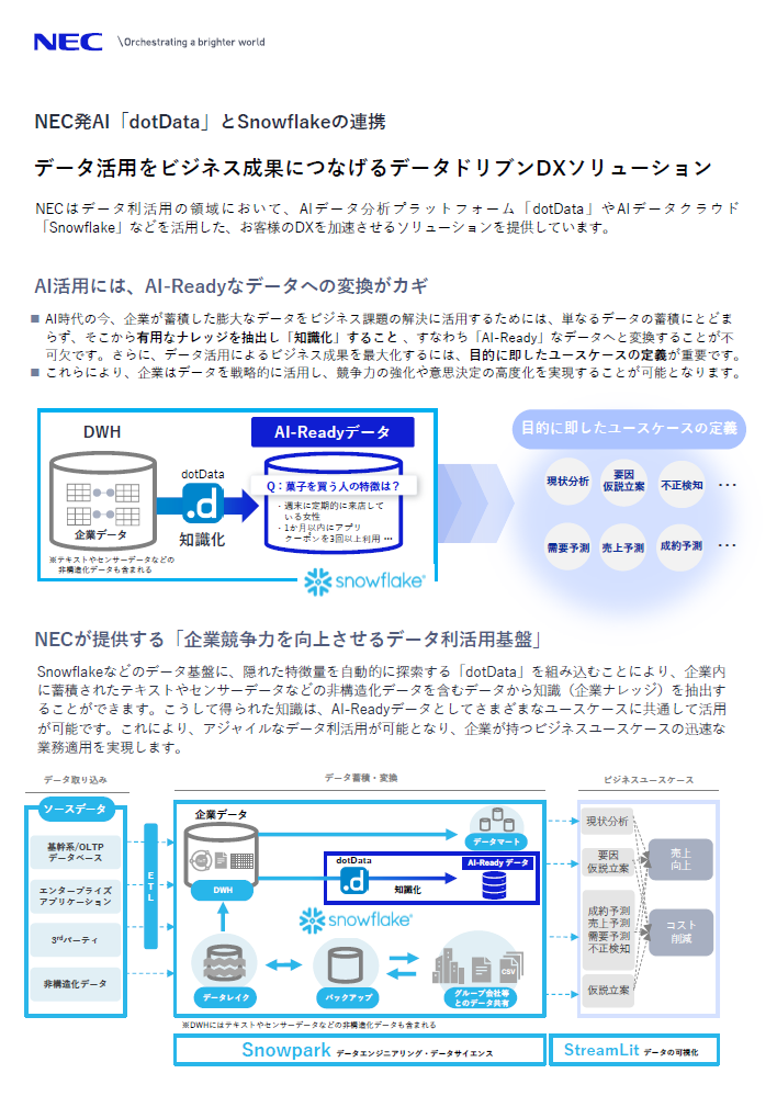 NEC発のAIが、最先端データ利活用基盤のSnowflakeに“魂“を込める!