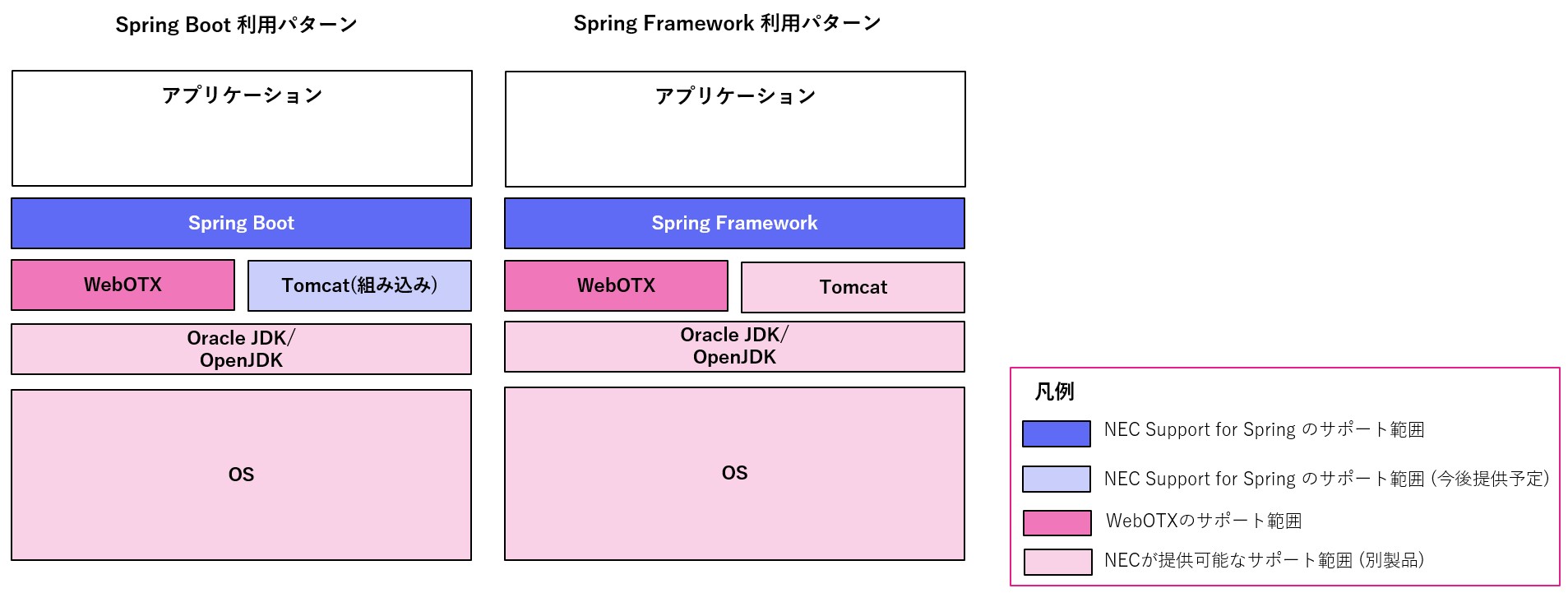 - (※2)Springを動作させるアプリケーションサーバがWebOTXApplication Server Standardの場合のみ利用可能。当該WebOTXの保守契約が必須。