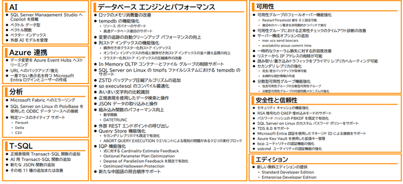 Microsoft SQL Server 2025 新機能/強化機能一覧