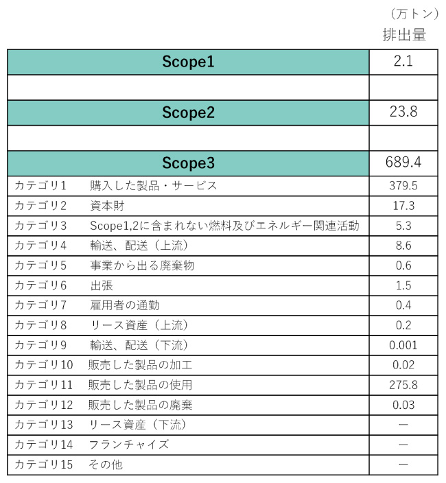| カテゴリ3 Scope 1、2に含まれない燃料およびエネルギー関連活動 | 41 | カテゴリ11 販売した製品の使用 | 952 |
