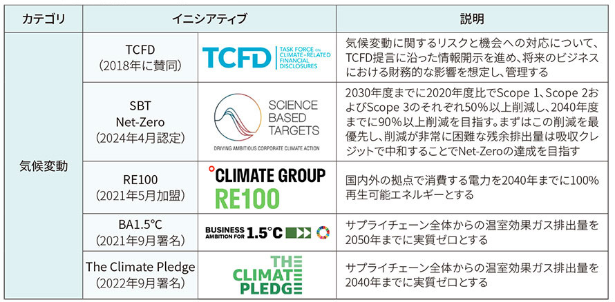 | 2025年度 | The Climate Pledge/SBT Net-Zero/RE100 | Scope 1、2 | 25%(2020年度比) |