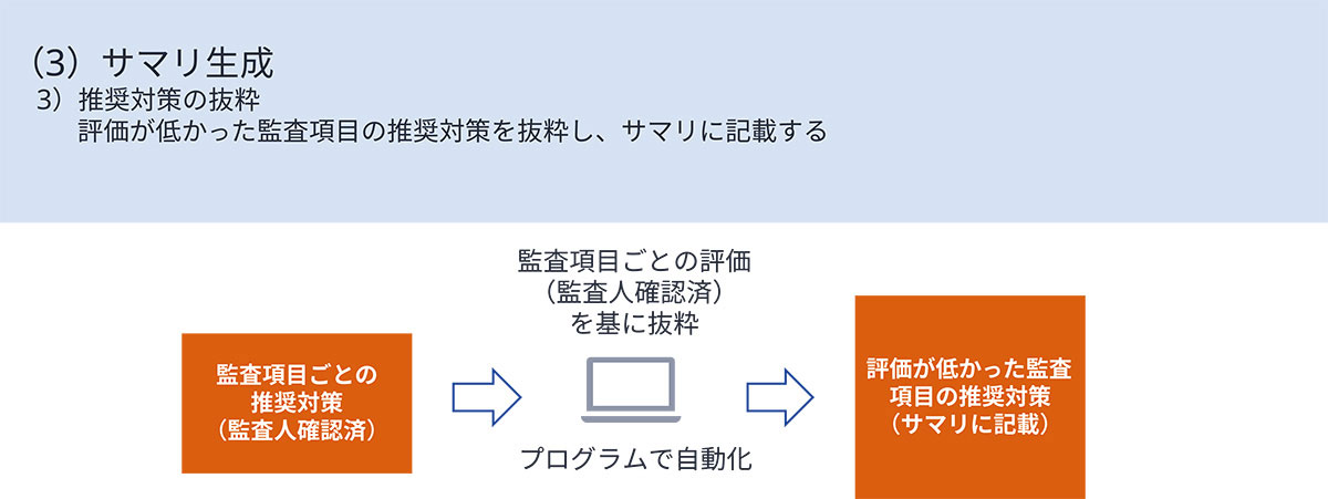 評価が低かった監査項目について推奨対策を抜粋し、サマリにも記載します(図6)。