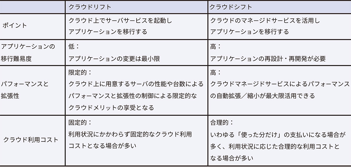 表 クラウドリフトとクラウドシフトの比較