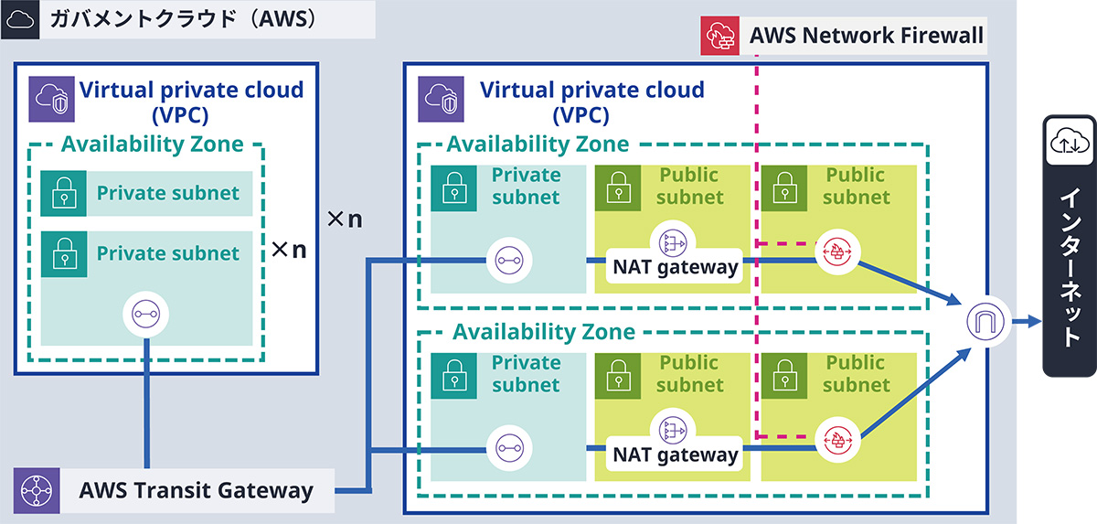 「基本環境構築テンプレート」(図3)を使用することで、基本環境(VPC/AWS Transit Gateway/AWS Network Firewall、など)を迅速に構築できます。