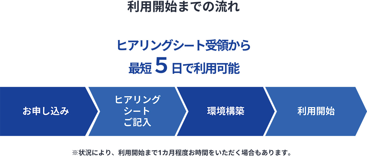 ガバメントクラウド運用支援サービスは、図5が示すように、お客様から申し込みをいただき、ヒアリングシートに記入いただいた後、最短5日で利用を開始できます。これはBluStellar Scenarioとしてサービスを共通化したことにより実現した特長です。