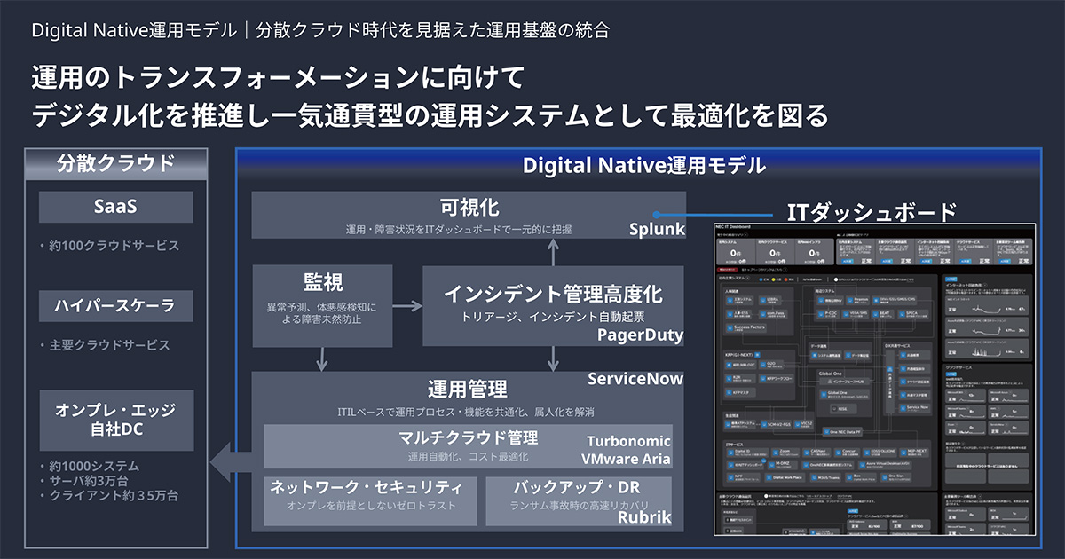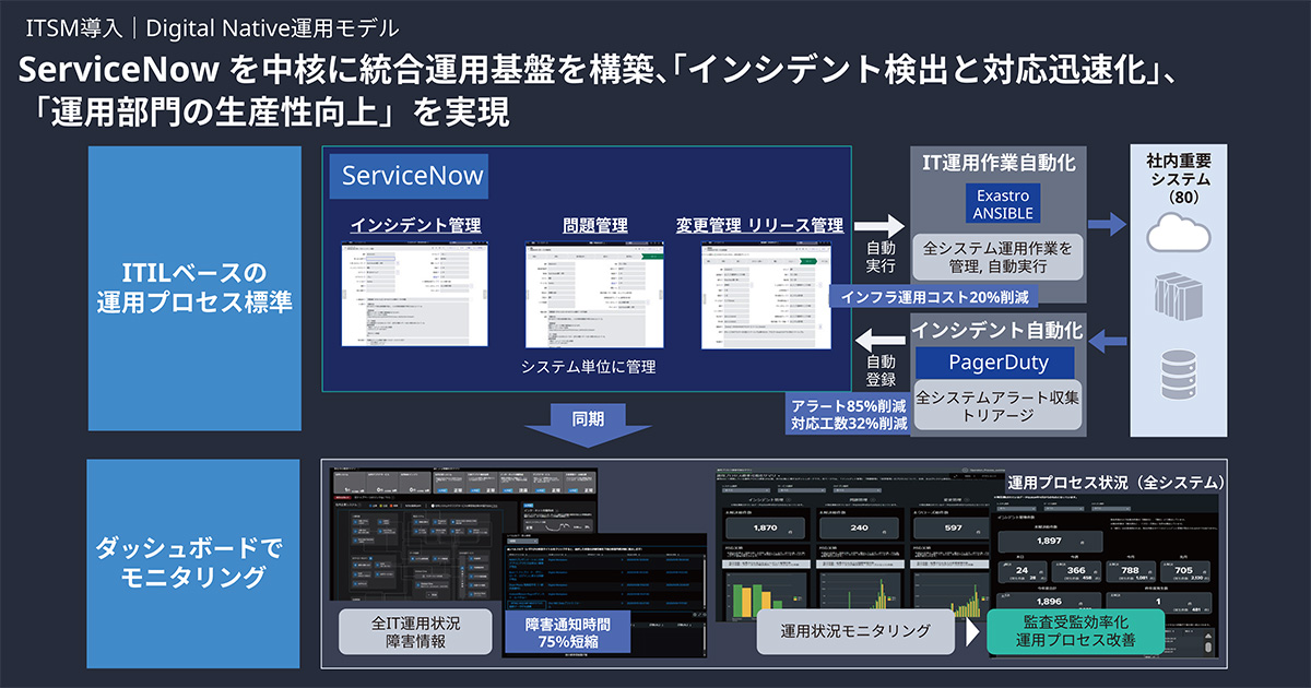 本稿では、Google Cloudを基盤とした社内システムのクラウド化をはじめ、運用DX施策や運用基盤の統一(デジタルネイティブ運用モデル)、更に運用状況の可視化やAI技術の導入による自律化(No Operations、以下、NoOps)まで、最新IT運用モデルへの変革の実践例と今後の展望について述べます。