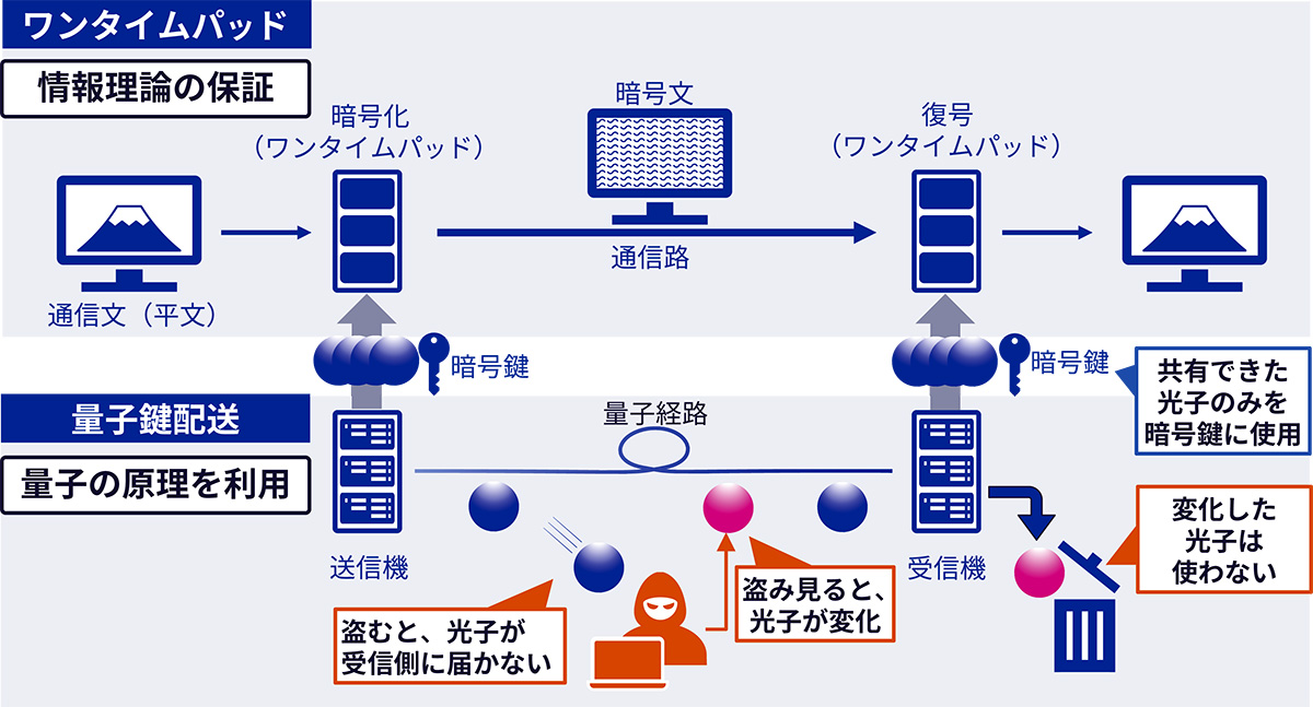このような背景から、国際的にはポスト量子暗号(Post-Quantum Cryptography:PQC)と並び、量子力学の原理に基づき情報理論的に安全とされる量子鍵配送(Quantum Key Distribution:QKD)並びにその暗号鍵を利用した量子暗号通信が注目を集めています。欧州や中国では広域量子ネットワーク構築が進み、日本でも総務省や国立研究開発法人情報通信研究機構(NICT)を中心とした国家プロジェクトが展開され、研究開発や実証が活発に行われています。