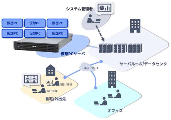 VirtualPCCenter基盤ソフトウェアは、NECの先進デスクトップ統合ソリューション「VirtualPCCenter」を実現するミドルウェアです。個々のPCを仮想化してサーバ上に集約。独自の管理技術でリソースの徹底活用と耐障害性を両立。 利用から管理・運用までトータルで実現します。