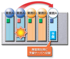 - 異なる業務 / OSで予備サーバを共有することができます。