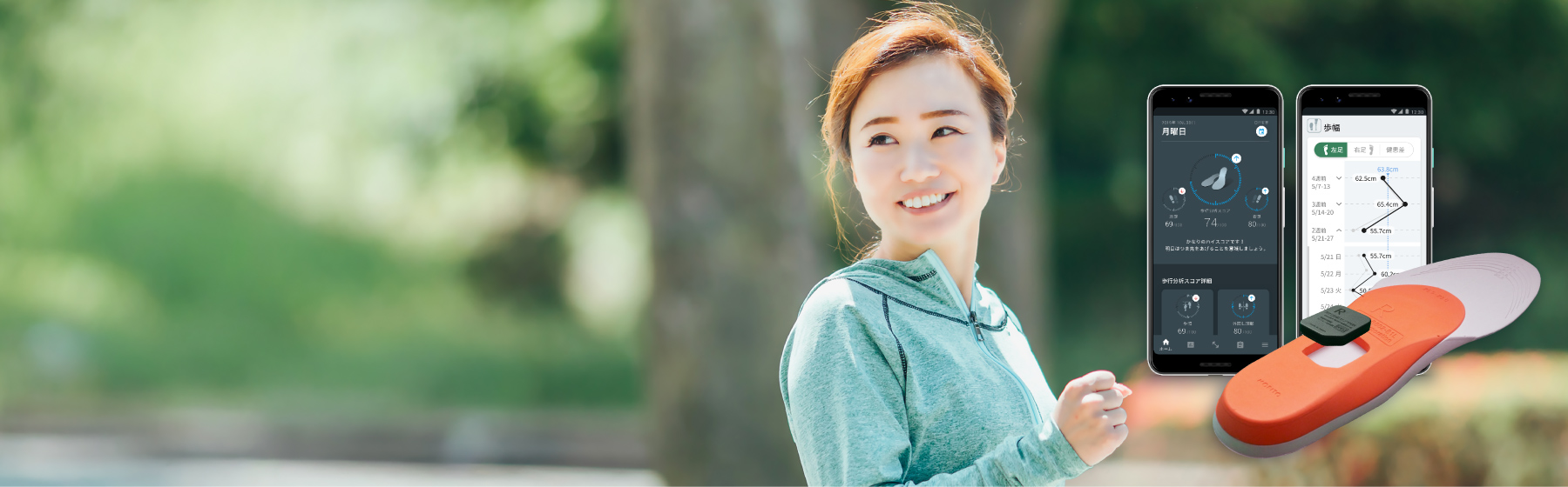 歩行の変化を捉えることで日々のコンディションに気付き、行動のきっかけを得ることができます。 きっかけを歩行の改善だけでなくからだの不調改善や予防につなげていく―― 私たちは歩行センシング技術を活用し、あなたとともに健康な日々の実現を目指します。